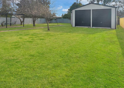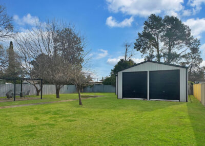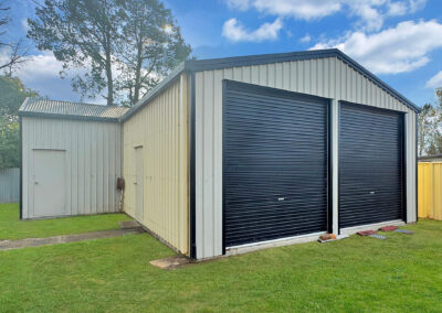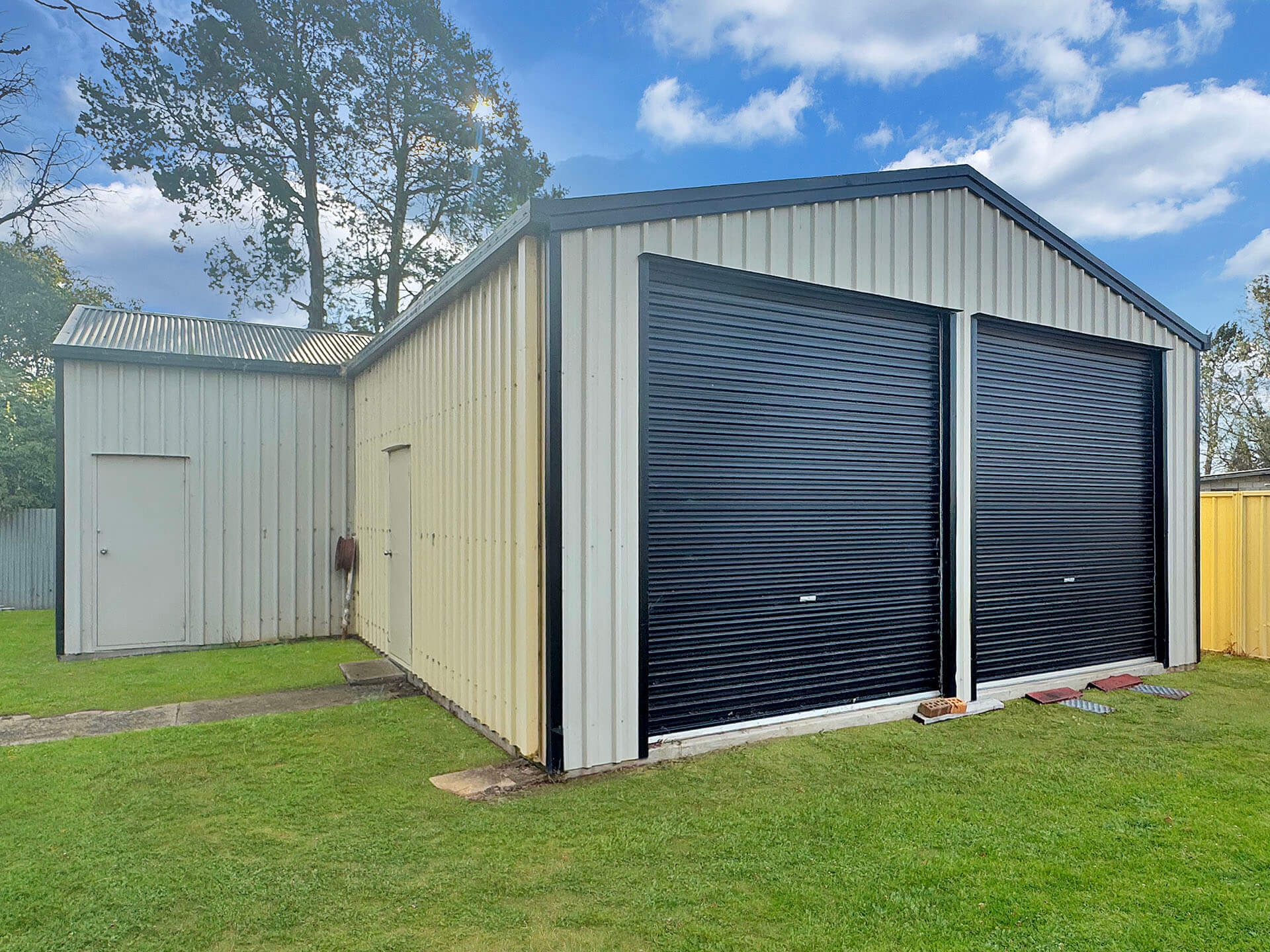 Shed: Large steel shed with 2 roller doors, 2 PA doors, insulation and partial plumbing