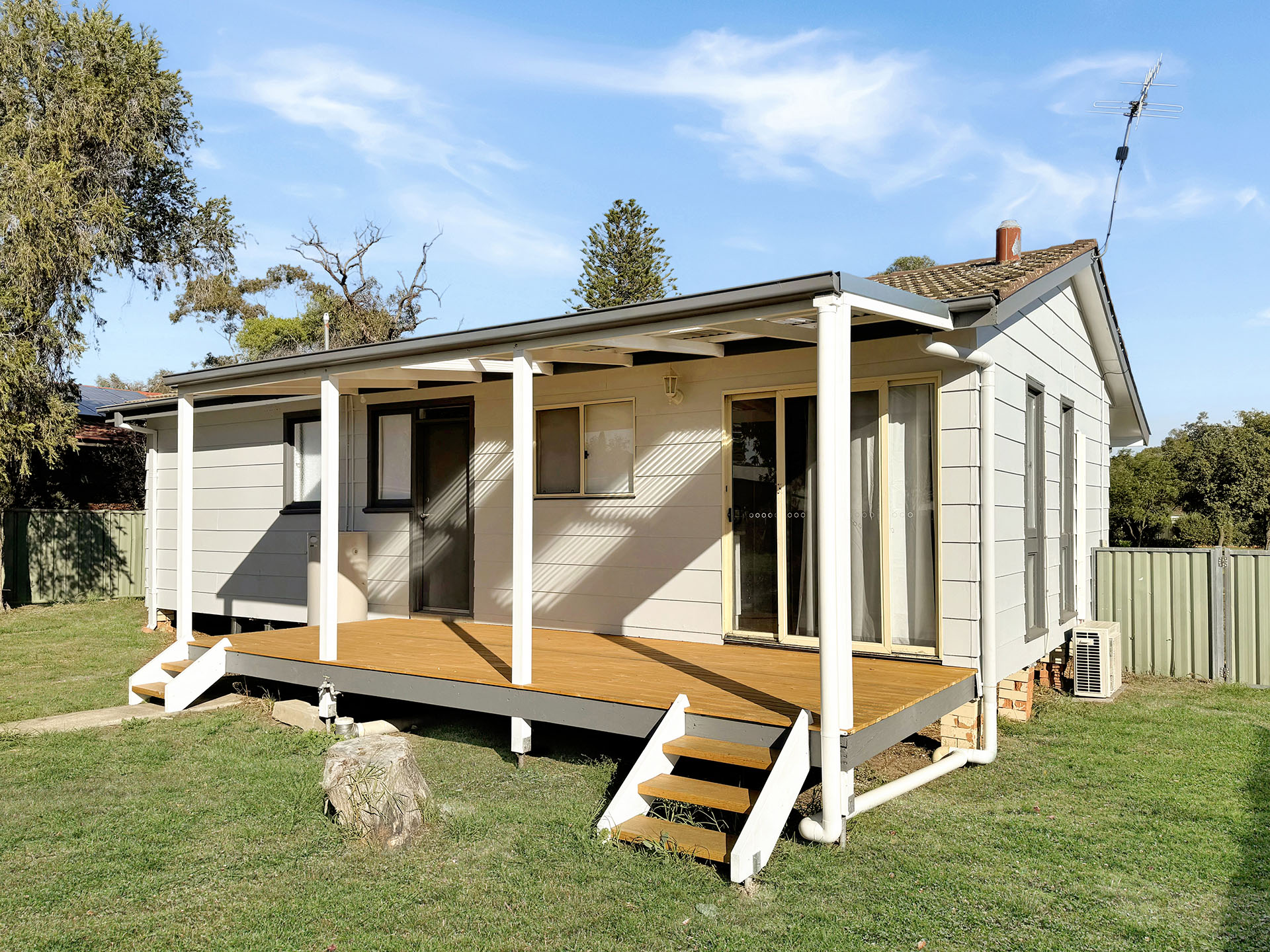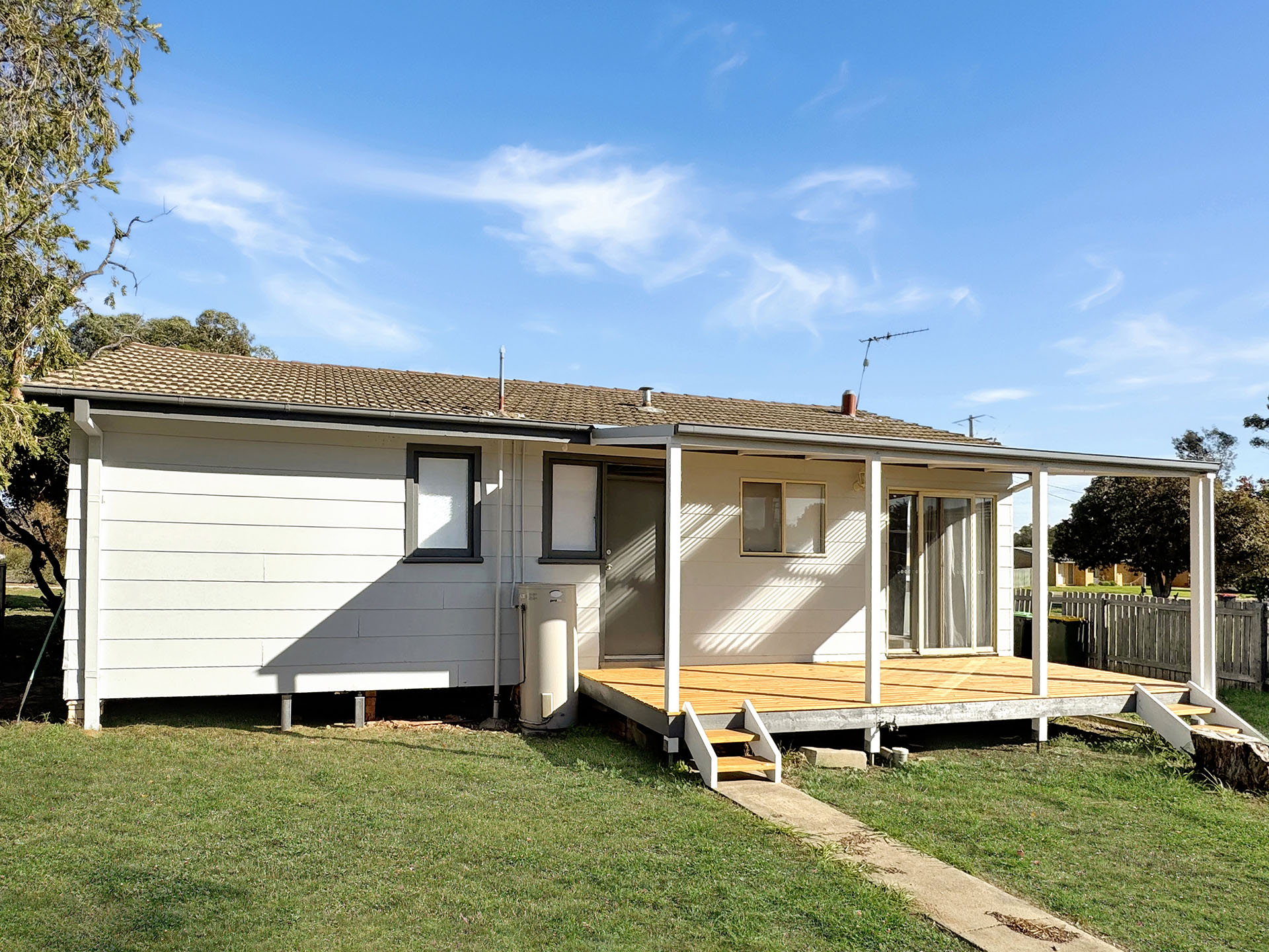 The vendor has done all the hard work – polishing the floorboards, replacing bedroom carpets, refreshing the bathroom, painting inside and out, even installing a new back patio.